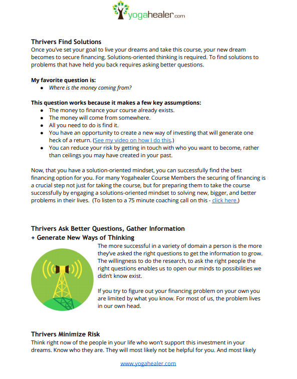 Once you’ve set your goal to live your dreams and take this course, you may be asking, “Where is the money going to come from?” This is my favorite question. Ask this question with genuine curiosity and expect insight and answers from your intelligence mind.