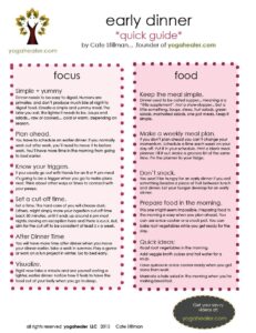 Right now take a minute and see yourself eating a lighter, earlier dinner. Notice how it feels to have the food out of your belly when you go to sleep.