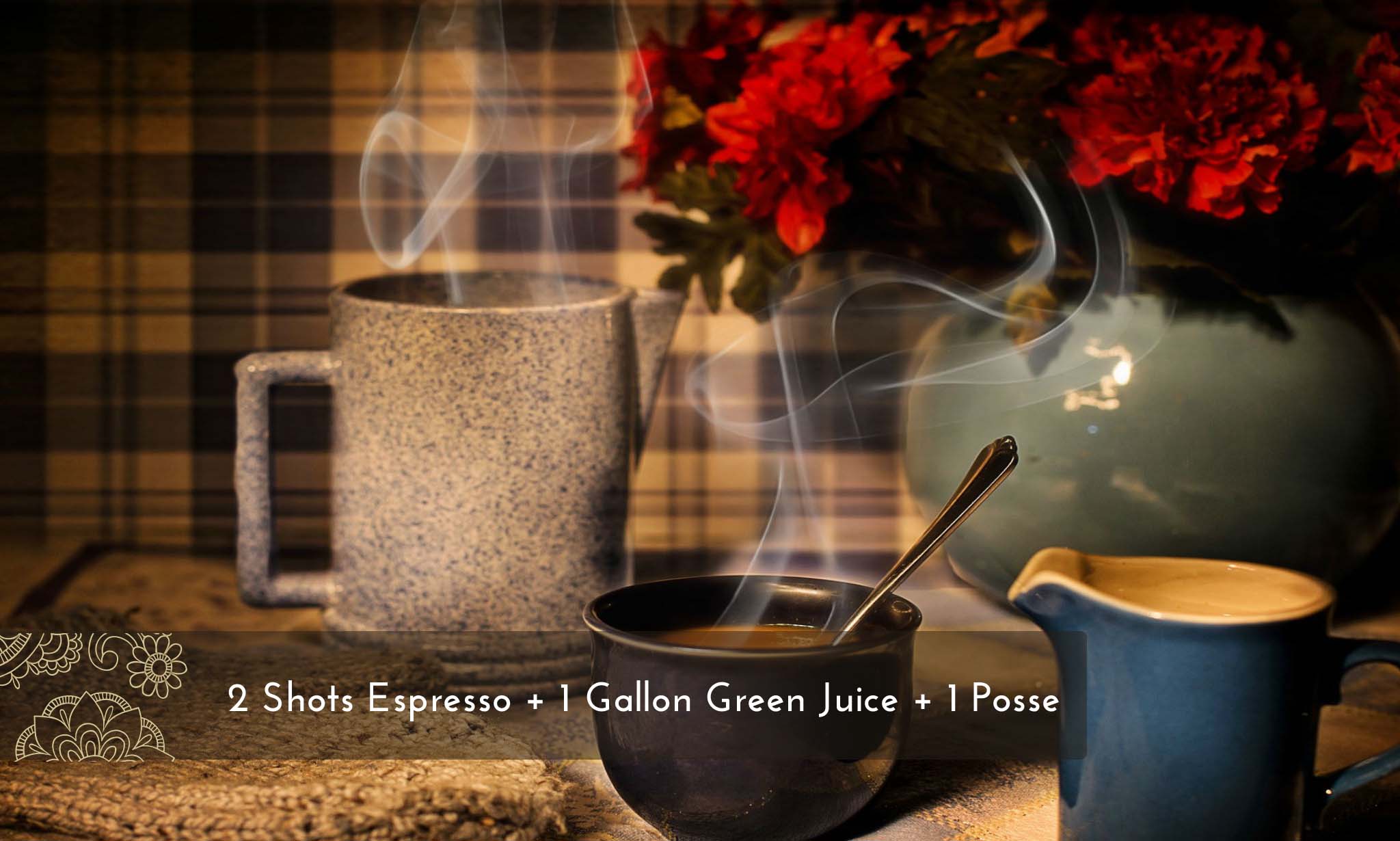 2 Shots Espresso + 1 Gallon Green Juice + 1 Posse