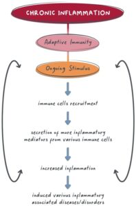 Which means the body is always dealing with overproduction of inflammation mediators – adrenalin, cortisol, and other chemical messengers like cytokines and adipokines.