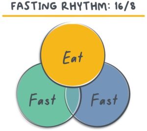 In a 16/8, your fast time is 16 hours. Your “feed time” is 8 hours. This is the baseline daily fasting rhythm.