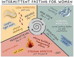 Metabolic flexibility is reflected in what women need through the phases of their cycle. Many women find longer fasting times more difficult the week before they get their period.