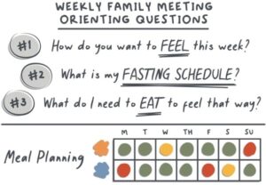 A simple organizing structure for families with the most basic habits around food and rest is to have a super dorky, super-effective 10-minute family meeting once a week.