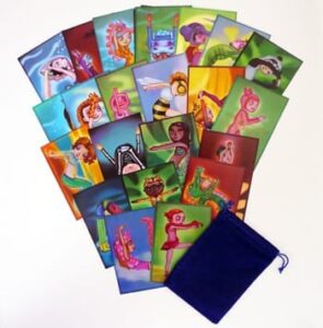 [span8]This game features poses on flashcards that demonstrate how the pose should look. Adult instructions and suggestions to talk about the pose on the back of the cards, so you can give more instruction to your child. The cards also what the effects of the poses are on the body. When kids are in a focusing mode, this seems to work and they love to try new poses and do “harder ones” after a few easier standing poses. My daughter said she liked it and would like to continue to play the game. The poses correspond with the chakra system.[/span8]