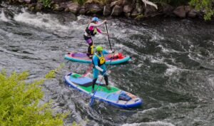 Whitewater paddle boarders take swims. Swims are hard. In a swim you are in the whitewater and not on your aerodynamic craft. In a swim you keep your feet up by the water surface pointed downstream. You don’t want a limb to hit a rock or god forbid get sucked into a crevice.