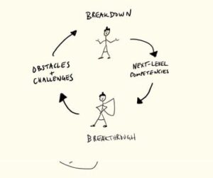 Obstacles and challenges will naturally arise on your journey to a more dynamic self. This journey is not flawed… it’s the natural course of your growth. The breakdown/ breakthrough cycle is a natural cycle. I drew this image to show how it works.